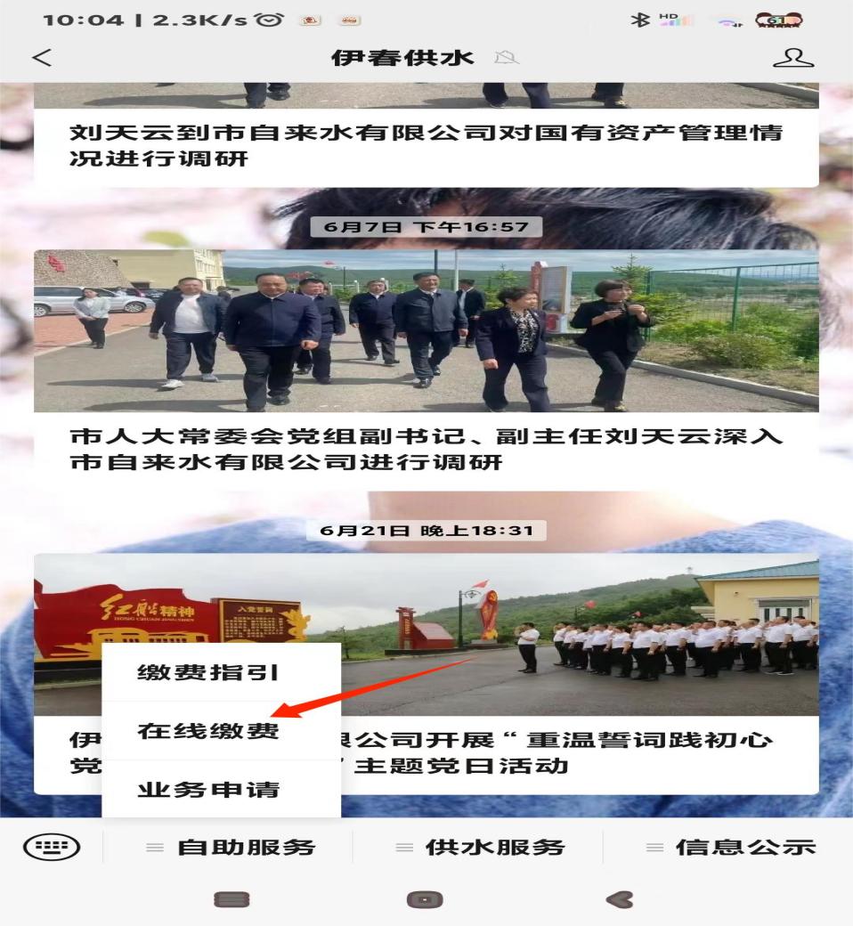 4、进入伊春供水后,点击“自助服务--在线缴费”