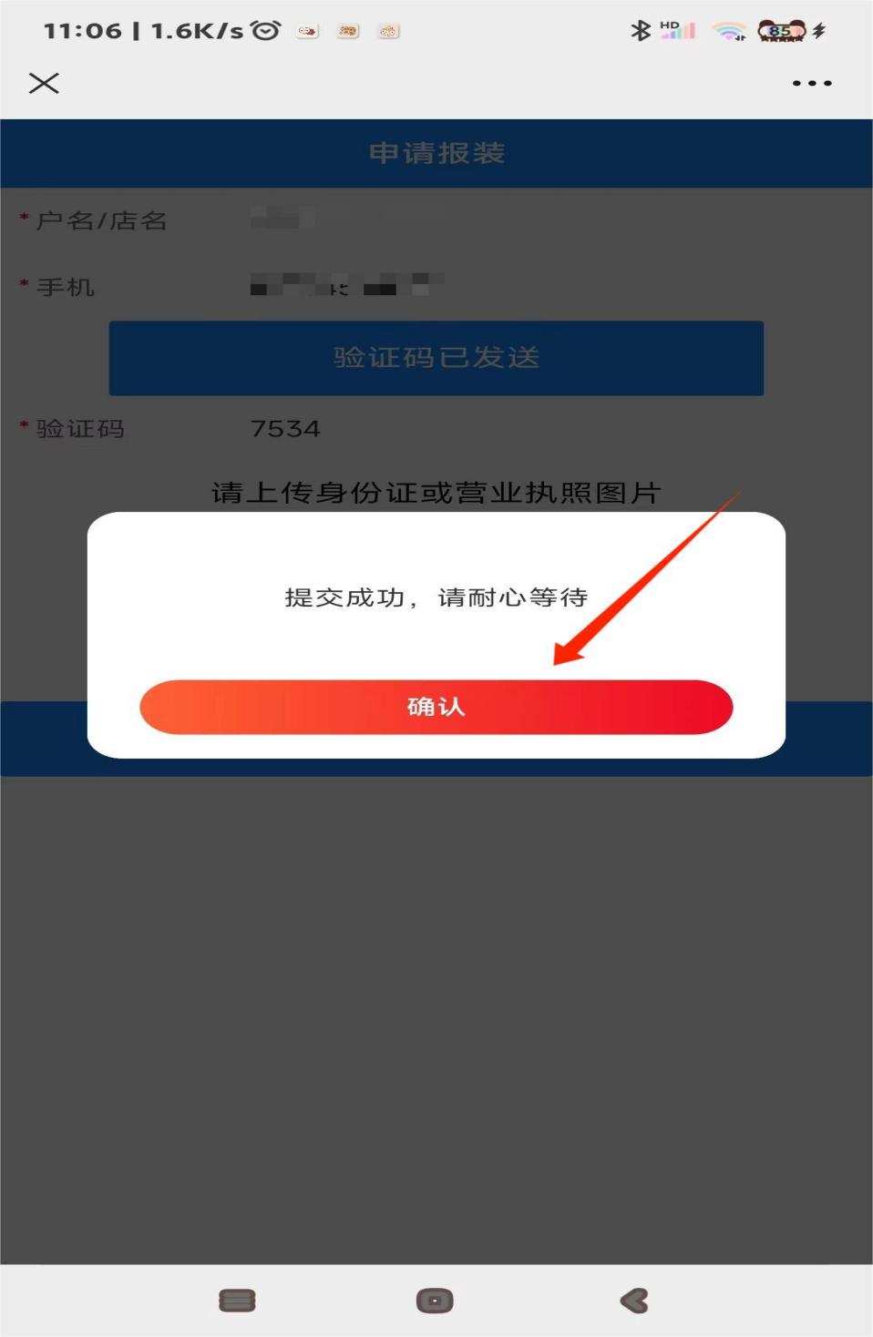 7、提交成功