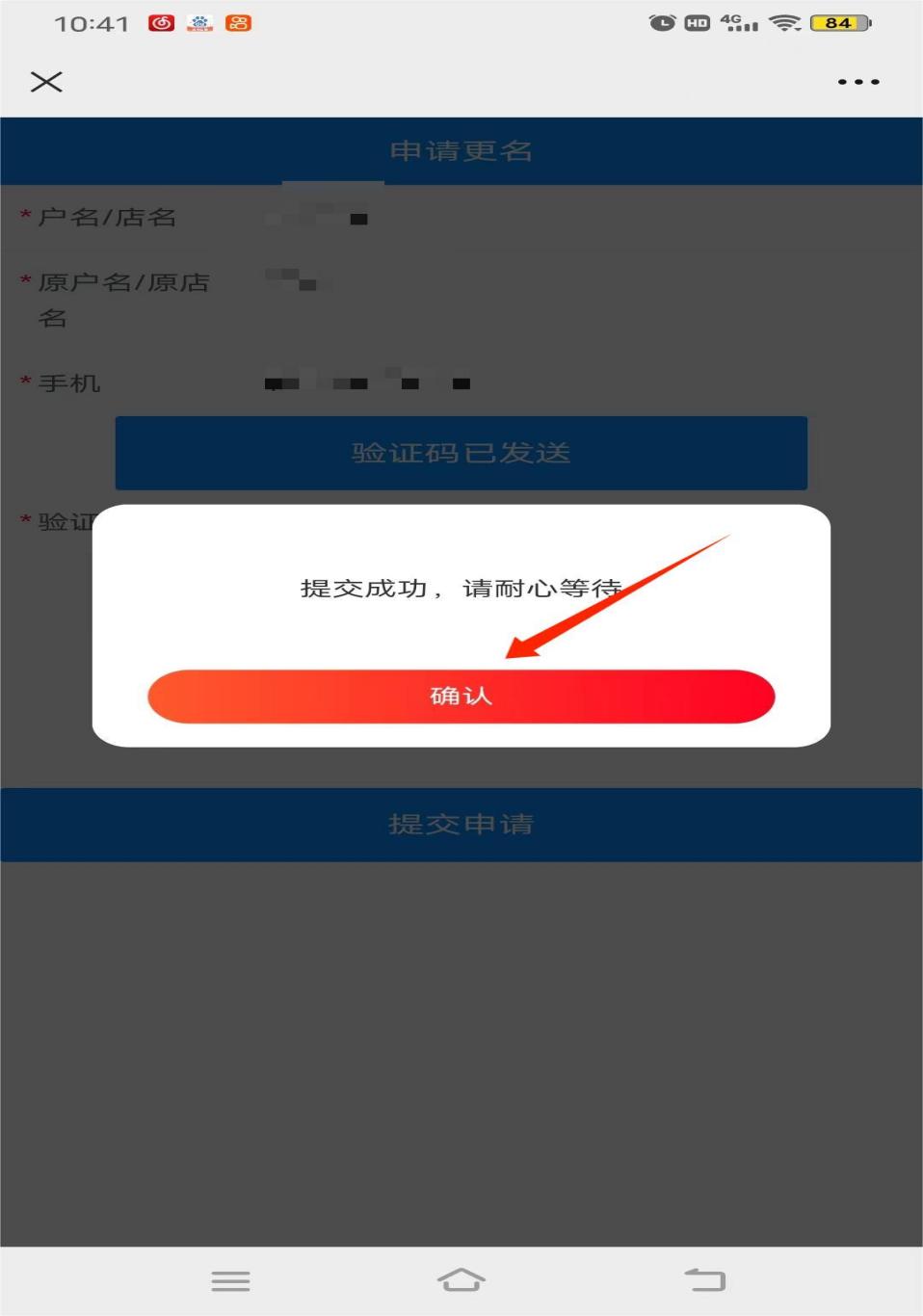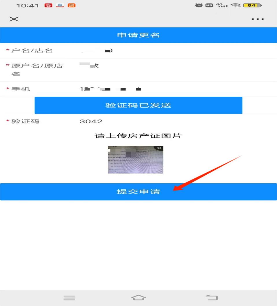 6、填写更名信息,点击提交申请