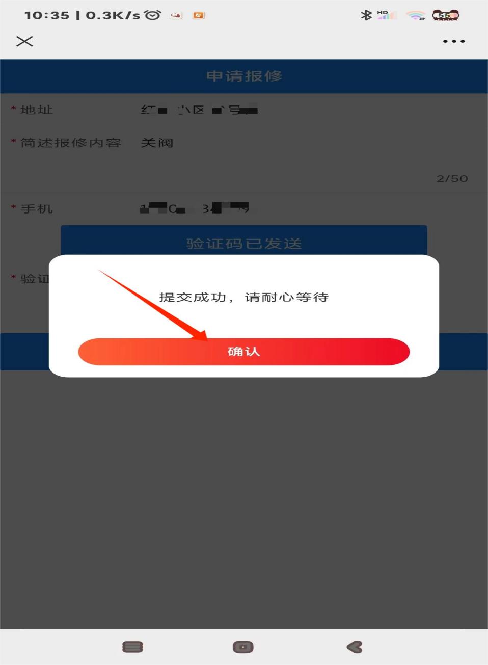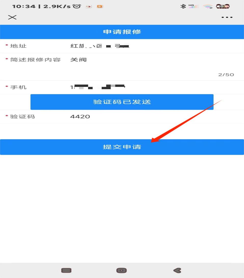 6、填写报修信息,点击提交申请