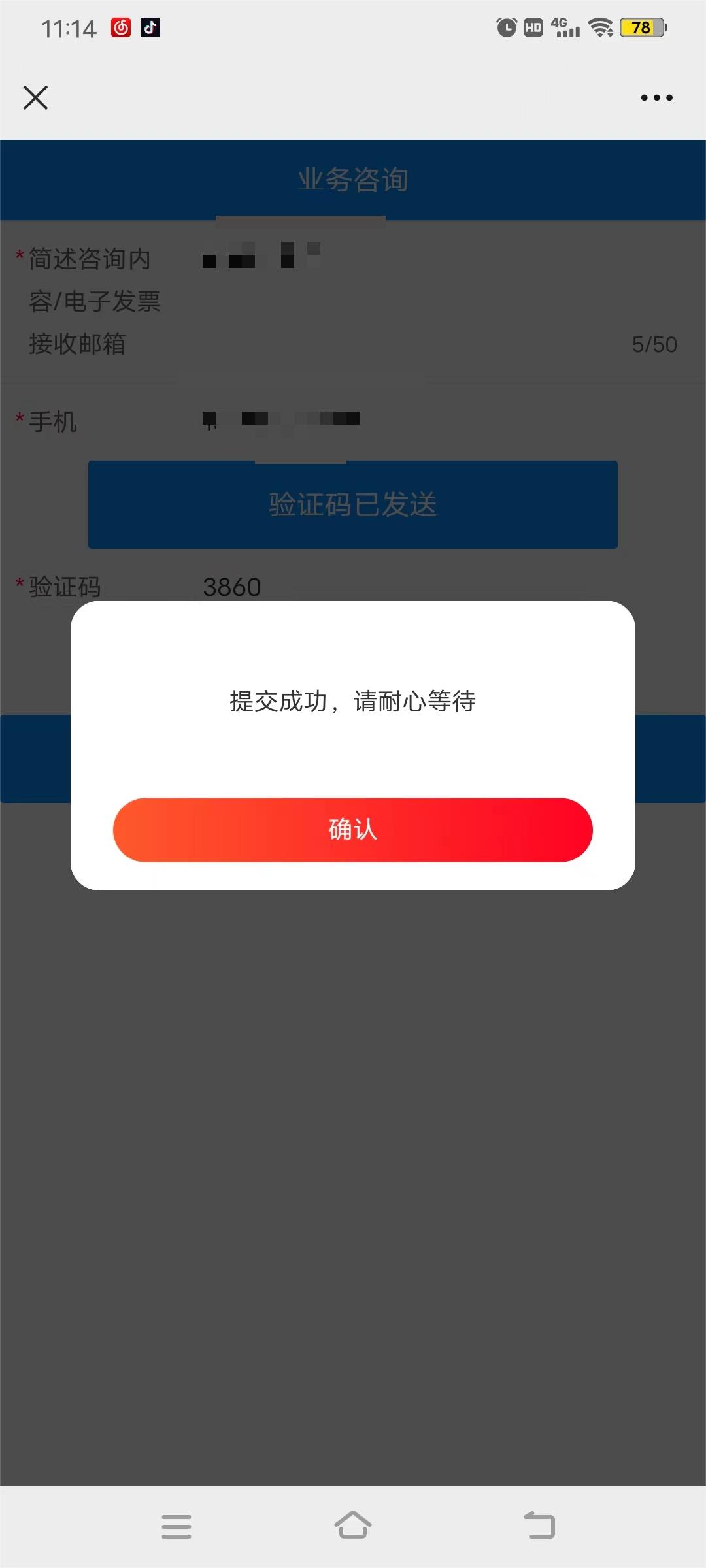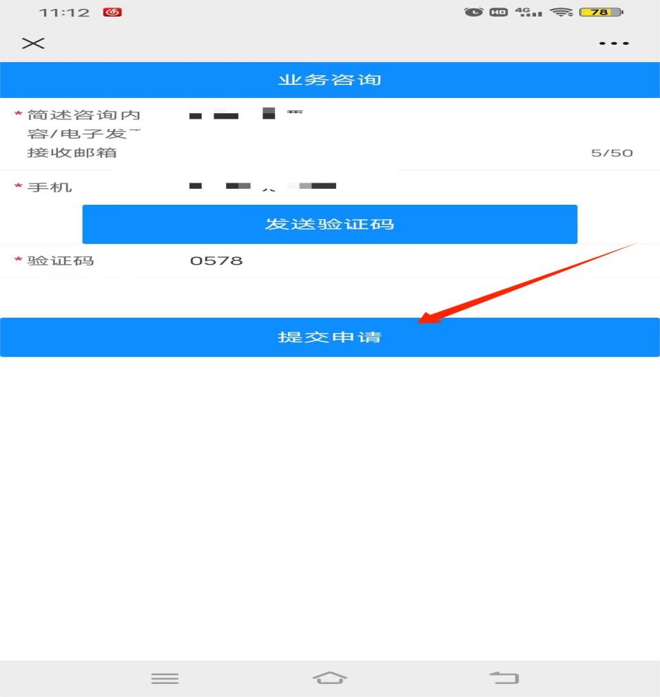 6、填写咨询内容,点击提交申请