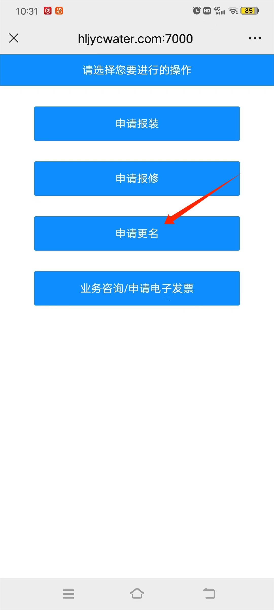5、点击“申请更名”