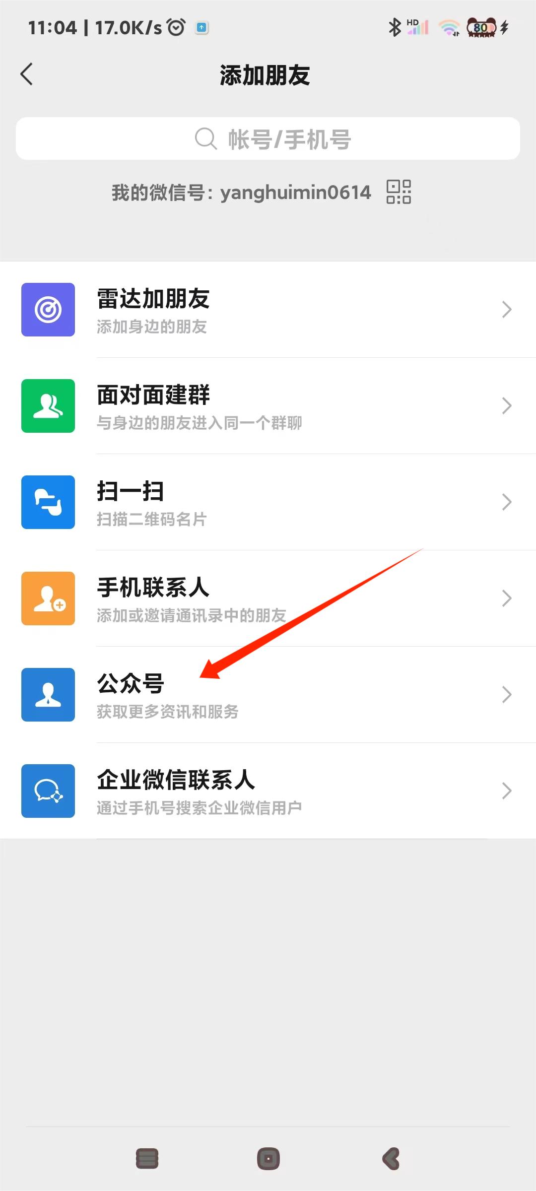 2、点击“公众号”