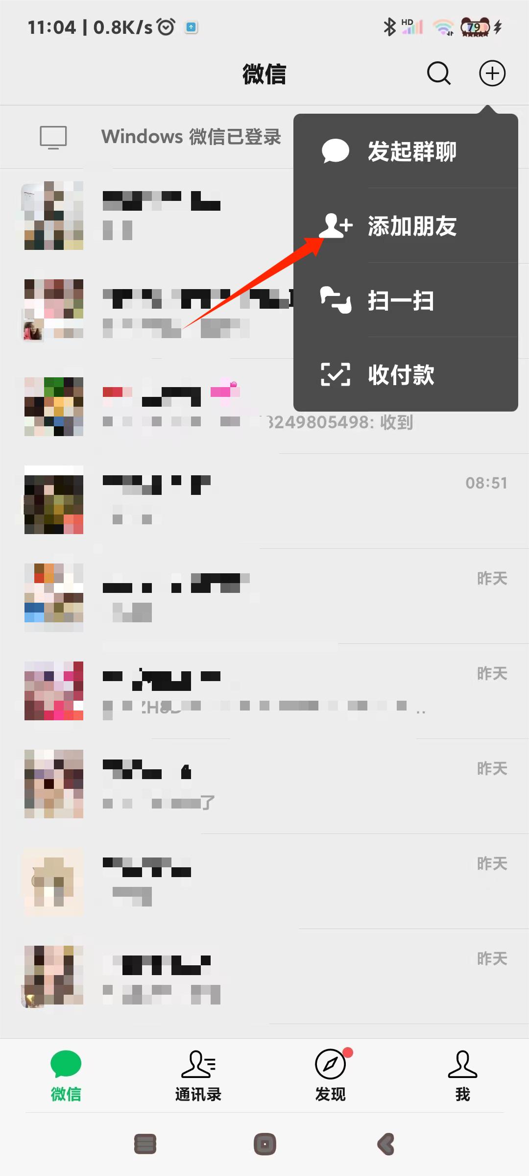 1、打开微信,点击添加朋友
