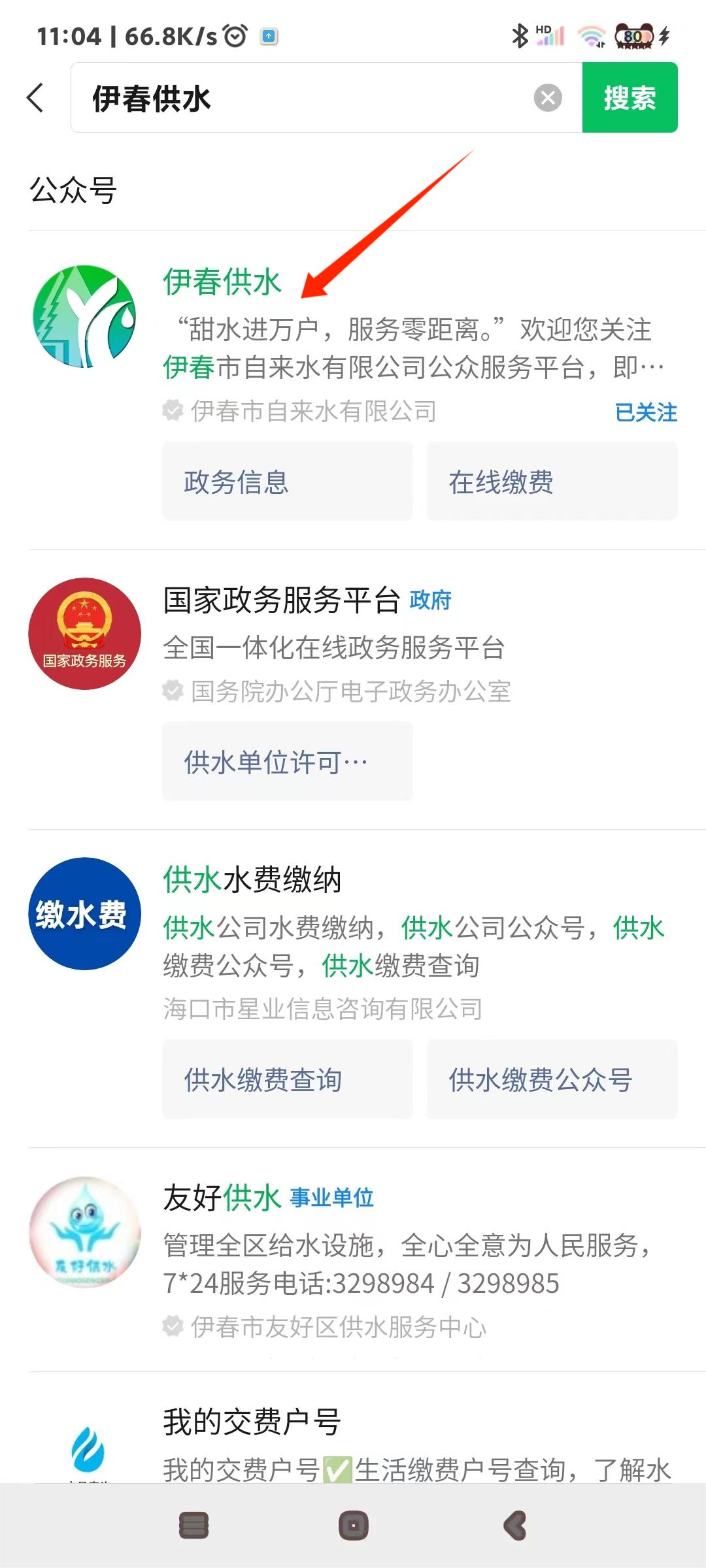3、搜索“伊春供水”