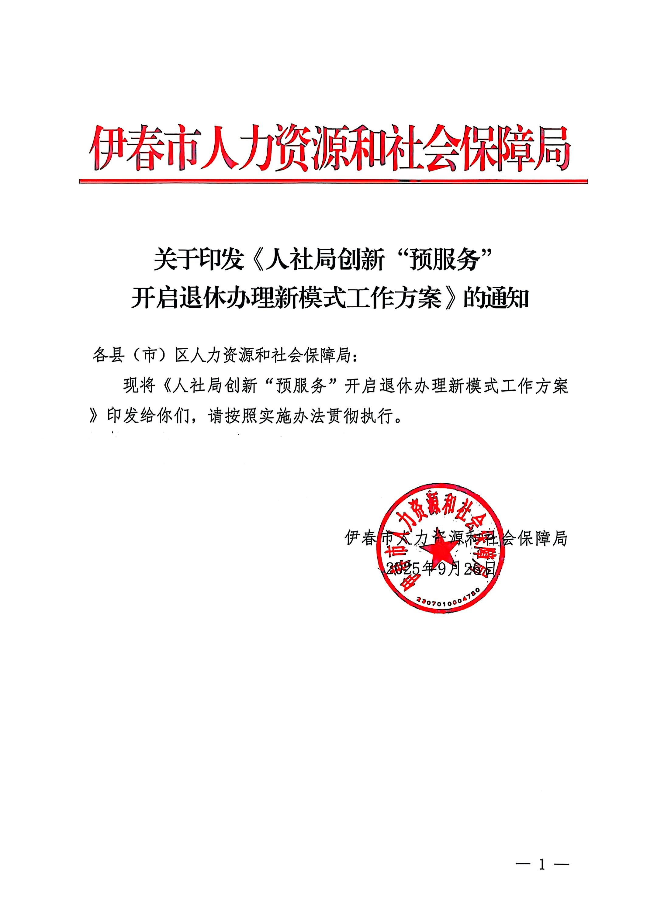 关于印发人社局创新与服务开启退休办理新模式工作方案的通知